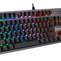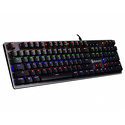 Состав: клавиатура • Назначение: настольный компьютер • Подключение: проводное (USB) • Конструкция: игровая • Цвет: серебристый, черный • Количество клавиш: 104 • Подставка под запястья: есть, отсоединяемая • Встроенная подсветка: есть • Регулировка наклона: есть • Ход клавиш: 1.5 мм • Защита клавиатуры: от воды, от пыли • Кабели: клавиатура - • Аксессуары в комплекте: 8 сменных клавиш, съемник для клавиш