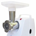 Номинальная мощность: 230 Вт • Реверс: есть • Производительность: 1.6 кг/мин • Вес: 3.3 кг • Насадки-решетки: Есть, 3 штуки • Прочие насадки: для приготовления кеббе, для приготовления колбас • Соковыжималка: есть • Отделение для хранения насадок: есть • Резиновые ножки: есть • Лоток для подачи продуктов: есть, пластик • Цвет корпуса: белый • Материал корпуса: пластик • Отделение для хранения кабеля: есть