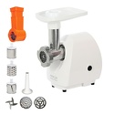 Номинальная мощность: 230 Вт • Производительность: 0.83 кг/мин • Вес: 5 кг • Насадки-решетки: Есть, 2 штуки (4.5 мм, 7 мм) • Насадки-терки: Есть • Насадки для шинковки: Есть • Прочие насадки: для приготовления колбас, для формовки теста • Соковыжималка: есть • Пластиковый шнек для ягод и фруктов: есть • Лоток для подачи продуктов: есть, пластик • Цвет корпуса: белый • Материал корпуса: нерж.сталь, пластик