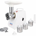 Номинальная мощность: 230 Вт • Реверс: есть • Производительность: 0.83 кг/мин • Размеры (ШxВxГ): 161x330x277 • Вес: 3.4 кг • Насадки-решетки: Есть, 2 штуки (7 мм, 5 мм) • Прочие насадки: для приготовления кеббе, для приготовления колбас • Резиновые ножки: есть • Лоток для подачи продуктов: есть, пластик • Цвет корпуса: белый • Материал корпуса: пластик • Отделение для хранения кабеля: есть