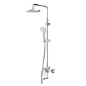 Устройство: душевая система • Смеситель: джойстик • Ручной душ (душевая лейка): размер 110 мм, настройки 1 шт • Верхний душ (тропический): размер 220 мм, настройки 1 шт • Комплектация: ручной душ, верхний душ, смеситель, стойка, шланг, крепление ручного душа