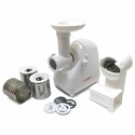 Реверс: есть • Производительность: 0.4 кг/мин • Насадки-решетки: Есть, 3 штуки • Насадки для шинковки: Есть, 4 штуки • Прочие насадки: для приготовления колбас, для формовки теста • Отделение для хранения насадок: есть • Лоток для подачи продуктов: есть, пластик • Цвет корпуса: белый • Материал корпуса: пластик • Максимальная мощность: 1500 Вт