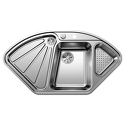Форма чаши: нестандартная • Материал: нерж. сталь • Количество чаш: 1 основная, 1 дополнительная • Установка: интегрированная • Крыло: есть • Глубина чаши: 17.5 см • Измельчитель пищевых отходов: нет • Размеры: 105.70x57.50 • Мотажное отверстие: 105.70x57.50 • Диаметр сливного отверстия: 3 " • Аксессуары в комплекте: клапан-автомат, колландер