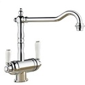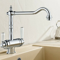 Классический дизайн элементов управления, подключение фильтра Отдельные рычаги управления для фильтрованной и нефильтрованной воды Один совмещенный излив для питьевой и обычной воды с разделением рассекателя