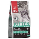 Blitz Sensitive Kitten All Breeds Линия кормов Blitz Sensitive для кошек Сбалансированный сухой корм класса супер премиум обеспечивает особые потребности растущих котят, но также может быть использован для беременных и кормящих кошек: Blitz Kitten содержит оптимальный баланс белков, жиров и других питательных веществ. Живые пробиотики, добавленные в формулу корма "Блиц" для котят, способствуют правильному росту и развитию малышей, стимулируют формирование крепкого иммунитета.