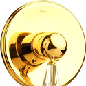 Назначение: душ • Конструкция: однорычажный • Монтаж: вертикальный • Материал: латунь, покрытие - золото • Подводка: жесткая • Монтажные отверстия: 1 отверстие • Душевая лейка в комплекте: нет • Донный клапан в комплекте: есть