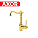 Назначение: для умывальника • Конструкция: однорычажный • Монтаж: горизонтальный • Материал: покрытие - золото • Монтажные отверстия: 1 отверстие • Форма излива: традиционная • Душевая лейка в комплекте: нет • Донный клапан в комплекте: есть
