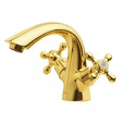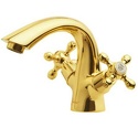 Назначение: для умывальника • Конструкция: двухрычажный • Монтаж: горизонтальный • Материал: покрытие - золото • Монтажные отверстия: 1 отверстие • Форма излива: традиционная • Душевая лейка в комплекте: нет • Донный клапан в комплекте: есть