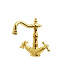 Назначение: для умывальника • Конструкция: двухрычажный • Монтаж: горизонтальный • Материал: покрытие - золото • Монтажные отверстия: 1 отверстие • Форма излива: традиционная • Душевая лейка в комплекте: нет • Донный клапан в комплекте: есть
