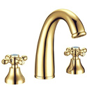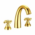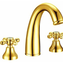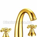 Назначение: для умывальника • Конструкция: двухрычажный • Монтаж: горизонтальный • Материал: покрытие - золото • Монтажные отверстия: 3 отверстия • Форма излива: традиционная • Душевая лейка в комплекте: нет • Аэратор: есть • Донный клапан в комплекте: есть