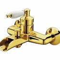 Назначение: ванна+душ • Конструкция: однорычажный • Монтаж: вертикальный • Материал: покрытие - золото • Подводка: жесткая • Монтажные отверстия: 2 отверстия • Форма излива: каскадная • Душевая лейка в комплекте: нет