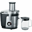 Соковыжималка Bosch MES4010 имеет красивый черно-серебристый корпус из металла с пластиковыми вставками. Модель центробежного типа оснащена 1.5-литровой емкостью для сока и 3-литровой емкостью для отжатой мякоти. Такая емкость резервуаров позволяет готовить сок на большую семью. При этом мощность соковыжималки в 1200 ватт сочетается с 3 рабочими скоростями. Устройство работает с использованием импульсного режима и системы прямой подачи сока. Соковыжималка защищена от случайного включения, имеет опцию автоматического выброса мякоти, широкую (8.4 см) круглую горловину и противокапельную систему. Все эти очевидные достоинства модели невозможно не оценить. Сеточка для фруктов изготовлена из металла и прослужит долгие годы. Устройство способно отжимать овощи и фрукты целиком. Bosch MES4010 имеет плавный пуск двигателя и защищена от перегрева. Соковыжималка укомплектована отсеком для 1.7-метрового шнура и прорезиненными ножками.