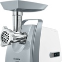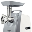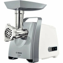 Электрическая мясорубка Bosch MFW 66020 отличается высокой производительностью и удобным загрузочным люком. Большой диаметр люка позволяет не тратить время на измельчение продуктов перед перемалыванием, а это, в свою очередь, экономит время хозяйки. Мощный (600Вт) мотор позволяет перемалывать до 3 килограмм мяса в минуту.В Bosch MFW 66020 предусмотрена реверсная система, с ее помощью можно быстро очистить ножи от намотанных жил и неперемолотых кусочков мяса. Для этого не требуется разбирать мясорубку, а нужно просто нажать на кнопку. Bosch MFW 66020 комплектуется тремя перфорированными дисками для получения фарша разной консистенции и насадками для кеббе и колбасок, что делает прибор очень функциональным.