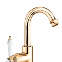 Назначение: для умывальника • Конструкция: двухрычажный • Монтаж: горизонтальный • Материал: покрытие - золото • Монтажные отверстия: 1 отверстие • Форма излива: традиционная • Душевая лейка в комплекте: нет