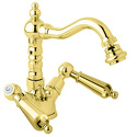 Назначение: для биде • Конструкция: двухрычажный • Монтаж: горизонтальный • Материал: латунь, покрытие - золото • Монтажные отверстия: 1 отверстие • Форма излива: традиционная • Душевая лейка в комплекте: нет • Донный клапан в комплекте: есть