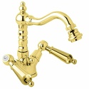 Назначение: для биде • Конструкция: двухрычажный • Монтаж: горизонтальный • Материал: латунь, покрытие - золото • Монтажные отверстия: 1 отверстие • Форма излива: традиционная • Душевая лейка в комплекте: нет • Аэратор: есть • Донный клапан в комплекте: есть