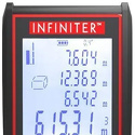 Лазерный дальномер INFINITER 100 1-2-324 оснащен функциями: измерение расстояний, длин, высот, проведение вычислений площадей и объемов измеряемых объектов, а также косвенных измерений с помощью теоремы Пифагора. Используется как в закрытых помещениях, так и на открытых строительных площадках. Корпус инструмента защищен от влаги и загрязнений, что позволяет использовать его при любых погодных условиях. Модель работает от двух батареек, которые всегда можно быстро заменить.
