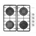 Поверхность: варочная панель • Тип поверхности: газовая • Рабочая поверхность: закаленное стекло • Число конфорок: 4 • Установка: независимая • Газовые конфорки: всего - 4 • Газ-контроль конфорок: есть • Тип управления: механическое • Переключатели: поворотные • Электроподжиг: есть, автоматический • Размеры: 590x510x80 мм • Размер ниши для встраивания: 555x475 мм • Цвет: панель - белый