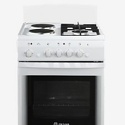 газ+электро панель + электрический духовой шкаф • газ-контроль конфорок • поверхность: эмалированная сталь • крышка из закалённого стекла • энергопотребление A • управление механическое • таймер механический • размеры (ШхГхВ): 50x60x85 см • цвет белый