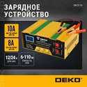 Производитель: Deko Модель: DKCC10 - ёмкость заряжаемой батареи: 6–110 А·ч - ток зарядки: 10 А - масса: 0.73 кг Описание