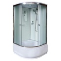 Монтаж душевой кабины осуществляется без использования силикона. Латунный смеситель с керамическими картриджами и резьбовыми соединениями. 100% акриловый поддон с дренажными отводами, высотой 50 см со съемным экраном усиленный металлическим каркасом с антискользящим покрытием. Матовое безопасное закаленное сверхпрочное стекло толщиной 4 мм с антикальциевой обработкой. Душевая штанга с регулировкой лейки по высоте и ручная лейка с силиконовыми форсунками диаметром 140 мм с функцией переключения режимов.