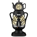 Тип: самовар • Объем: 4 л • Мощность: 1850 Вт • Материал корпуса: пластик • Цвет: черный • Нагревательный элемент: скрытый • Мощность в режиме поддержания температуры: 100 Вт • Фильтр: есть, нерж. сталь • Указатель уровня воды: есть • Индикация включения: есть • Автоотключение при закипании: есть • Блокировка включения без воды: есть