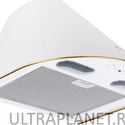 конструкция купольная • монтаж настенный • ширина 50 см • управление механическое/слайдерное • производительность мотора 430 м³/ч • цвет белый/золотой