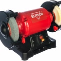 Универсальный электрический станок для заточки Elitech CT 200 оснащён надёжным асинхронным двигателем мощностью 200 Вт с двумя опорными подшипниками большого диаметра для долговечной работы. Двигатель имеет низкие показатели уровня шума и вибрации во время работы. При всем этом точило имеет компактный размер и небольшой вес. Ёмкость охлаждения встроена в нижнюю часть корпуса, под выключателем. Щитки, встроенные в защитные кожухи, предохраняют руки мастера от раскалённых частичек.