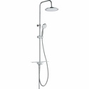 Устройство: душевая система • Ручной душ (душевая лейка): размер 120 мм, настройки 3 шт • Верхний душ (тропический): размер 240 мм, настройки 1 шт • Комплектация: ручной душ, верхний душ, стойка, шланг, крепление ручного душа, полка