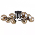 Потолочная люстра стиля модерн для гостиной, кабинета или спальни имеет размеры 720x675x220 мм. Арматура светильника окрашена в коричневый цвет. Лампы в комплекте - отсутствуют. В светильнике применяются лампы накаливания или светодиодная LED-лампа. Цвет плафонов - коричневый, с прозрачной поверхностью. Материал плафонов - стекло. Класс электробезопасности - I, степень пылевлагозащиты (IP) - 20. Максимальная мощность лампы (Вт) - 40. Светильник размещается на потолоке.