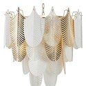 Подвесной светильник стиля модерн для гостиной, кабинета, прихожей или спальни имеет размеры 620x1970 мм. Арматура светильника окрашена в золотой цвет. Лампы в комплекте - отсутствуют. В светильнике применяются лампы накаливания или светодиодная LED-лампа. Цвет плафонов - белый, золото, неокрашенный, с глянцевой, матовой, прозрачной, рельефной поверхностью. Материал плафонов - металл, стекло, фарфор. Класс электробезопасности - I, степень пылевлагозащиты (IP) - 20. Максимальная мощность лампы (Вт) - 40.