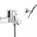 Назначение: ванна+душ • Конструкция: однорычажный • Монтаж: вертикальный • Материал: латунь, покрытие - хром • Подводка: жесткая • Монтажные отверстия: 2 отверстия • Форма излива: традиционная • Душевая лейка в комплекте: есть • Держатель для душевой лейки: настенный держатель • Аэратор: есть • Эксцентрики в комплекте: есть