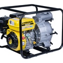 для грязной воды • бензиновый двигатель SPE200 • мощность 4.8 кВт • производительность 1300 л/мин • высота подъема 28 м • бак 3.6 л • патрубки 80/80 мм