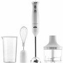 Поэтому компания выпускает широкий ассортимент наборов сменных насадок, продаваемых вместе с погружным блендером. Из-за этого прибор выполняет все функции стационарного устройства, и в зависимости от мощности справляется почти со всеми видами продуктов.