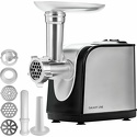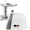 Реверс: есть • Насадки-решетки: Есть • Прочие насадки: для приготовления кеббе, для приготовления сосисок • Резиновые ножки: есть • Лоток для подачи продуктов: есть, металл • Цвет корпуса: нерж.сталь • Материал корпуса: нерж.сталь • Защита от перегрузки: есть • Максимальная мощность: 1200 Вт