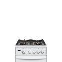 Тип конфорок: газовые • Рабочая поверхность: закаленное стекло • Тип духовки: газовая • Размеры (ШxВxГ): 500x850x585 мм • Цвет: белый • Газовые конфорки: всего - 4 • Газ-контроль конфорок: есть • Объем духовки: 52 л • Гриль: есть • Газ-контроль духовки: есть • Очистка духовки: традиционная • Подсветка: есть • Вертел: есть • Тип управления: механическое • Переключатели: поворотные • Дисплей: есть • Часы: есть