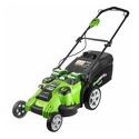 Производитель: Greenworks Модель: 2500207 G-MAX 40V 49 cm 3-in-1 - Колесная газонокосилка - электрический двигатель от аккумулятора (40 В / 4 А·ч) - ширина скашивания 49 см - регулировка высоты скашивания (30-90 мм) - функция мульчирования мягкий травосборник Описание