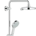 Устройство: душевая система • Смеситель: термостатический • Ручной душ (душевая лейка): размер 114 мм, настройки 2 шт • Верхний душ (тропический): размер 190 мм, настройки 4 шт • Комплектация: ручной душ, верхний душ, смеситель, стойка, шланг, крепление ручного душа