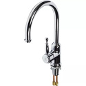 Назначение: кухонный • Конструкция: однорычажный • Монтаж: горизонтальный • Клапан: керамический • Материал: латунь, покрытие - хром • Подводка: гибкая • Монтажные отверстия: 1 отверстие • Форма излива: традиционная • Душевая лейка в комплекте: нет • Аэратор: есть • Донный клапан в комплекте: есть