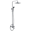 Устройство: душевая система • Смеситель: двухвентильный • Ручная лейка: настройки 1 шт • Верхний душ: размер 250 мм, настройки 1 шт • Комплектация: ручной душ, смеситель, стойка, шланг, крепление ручного душа