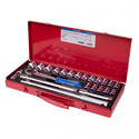 Комплектация- Головки короткие 12-гранные 4330M 10, 11, 12, 13, 14, 15, 16, 17, 18, 19, 20, 21, 22, 23, 24, 27, 30, 32 мм- Трещотка флажковая 4779-10GR 32 зубца, 250 мм- Вороток с шарниром 4452-15FR 380 мм- Удлинители 4251R 125, 250 мм- Кардан 4791R 77,5 мм- Металлический кейс - 445 x 187 x 50 мм- Ложемент PVC - 440 х 180 мм