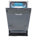 Общие характеристики Тип узкая Установка встраиваемая (полностью) Вместимость 9 комплектов Класс энергопотребления A Класс мойки A Класс сушки A Тип управления электронное Дисплей естьТехнические характеристики Расход воды 12 л Энергопотребление за цикл 0.74 кВтч Уровень шума при работе 52 дБПрограммы и режимы мойки Количество программ 5 Количество температурных режимов 5 Сушка посуды конденсационная Стандартные программы мойки обычная программа для повседневного мытья, интенсивная программа для сильнозагрязненной посуды, экспресс-программа (быстрый цикл) Специальные программы «деликатная» программа для мытья хрупкой посуды, режим предварительного замачиванияДругие функции и особенности Таймер отсрочки запуска есть, от 3 до 12 часов Защита от протечек есть, полная Возможность подключения к горячей воде есть Использование средств 3 в 1 есть Звуковой сигнал есть Индикатор наличия соли / ополаскивателя есть / есть Особенности рабочей камеры внутренняя поверхность из нерж. стали, регулируемая по высоте корзина для посуды Размеры (ШхГхВ) 45x55x81 см