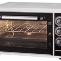 Тип: электрическая • Установка: независимая • Объем: 38 л • Цвет: белый • Дверца: откидная • Максимальная температура: 320 °С • Подсветка: есть • Количество режимов работы духовки: 3 • Переключатели: поворотные • Таймер: есть, до 90 мин • Потребляемая мощность: 1500 Вт • Комплектация: 2 противня, 1 решетка