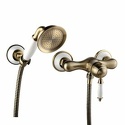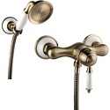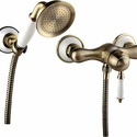 Назначение: душ • Конструкция: однорычажный • Монтаж: вертикальный • Клапан: керамический • Материал: покрытие - бронза • Подводка: жесткая • Монтажные отверстия: 2 отверстия • Душевая лейка в комплекте: есть • Держатель для душевой лейки: настенный держатель • Донный клапан в комплекте: есть