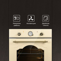 электрический с конвекцией • объем 60 л • ретродизайн • очистка ручная • 2 стекла в дверце • направляющие проволочные + телескопические (1 уровень)
