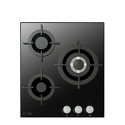 Поверхность: варочная панель • Тип поверхности: газовая • Рабочая поверхность: закаленное стекло • Число конфорок: 3 • Установка: независимая • Газовые конфорки: всего - 3 • Газ-контроль конфорок: есть • Тип управления: механическое • Переключатели: поворотные • Электроподжиг: есть, автоматический • Размеры: 450x510x40 мм • Размер ниши для встраивания: 400x480 мм • Цвет: панель - черный
