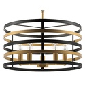 Подвесной светильник стиля модерн для гостиной, кабинета, прихожей или спальни имеет размеры 500x1250 мм. Арматура светильника окрашена в латунный и черный цвет. Лампы в комплекте - отсутствуют. В светильнике применяются лампы накаливания или светодиодная LED-лампа. Цвет плафонов - латунь, с матовой поверхностью. Материал плафонов - металл. Класс электробезопасности - I, степень пылевлагозащиты (IP) - 20. Максимальная мощность лампы (Вт) - 40. Светильник размещается на потолоке.