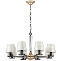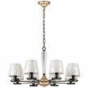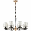 Подвесная люстра стиля классика для гостиная имеет размеры 800x1250 мм. Арматура светильника окрашена в золотой и черный цвет. Лампы в комплекте - отсутствуют. В светильнике применяются лампы накаливания или светодиодная LED-лампа. Цвет плафонов - светло-серый, с матовой поверхностью. Материал плафонов - текстиль. Класс электробезопасности - I, степень пылевлагозащиты (IP) - 20. Максимальная мощность лампы (Вт) - 40. Светильник размещается на потолоке.