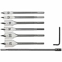 Комплектация- набор сверл перовых по дереву: 10, 12, 16, 18, 20, 25 мм- удлинитель 300 мм- угловой шестигранник