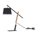 Настольная лампа декоративная стиля модерн для гостиной, кабинета или спальни имеет размеры 230x800 мм. Арматура светильника окрашена в черный цвет. Лампы в комплекте - отсутствуют. В светильнике применяются лампы накаливания или светодиодная LED-лампа. Цвет плафонов - черный, с матовой поверхностью. Материал плафонов - текстиль. Класс электробезопасности - II, степень пылевлагозащиты (IP) - 20. Максимальная мощность лампы (Вт) - 60. Светильник размещается на столе.